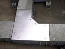 鉄板切削箇所からサビが進行し、非常に深い赤錆が発生しています。